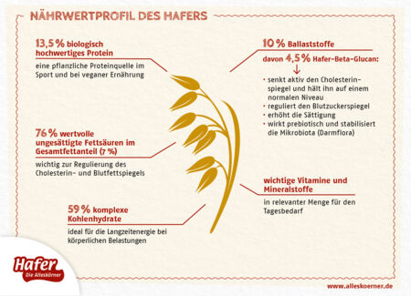 Auch für Hafer-Beta-Glucan sind mehrere gesundheitsbezogene Angaben zugelassen. Diese finden Sie hier.