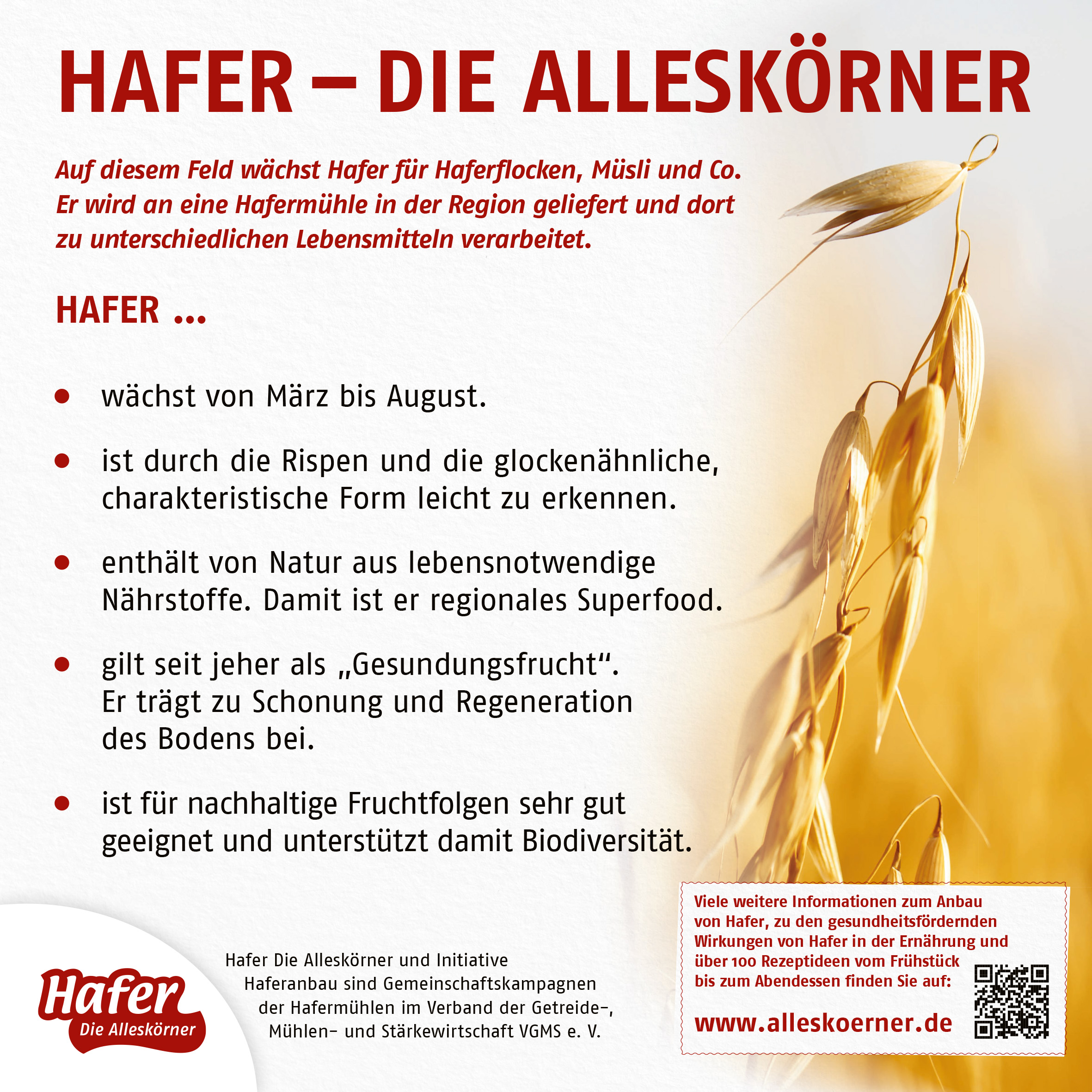 Da viele landwirtschaftliche Betriebe hin und wieder ihre Tore für Verbraucherinnen und Verbraucher, für Schulklassen und Kitagruppen öffnen, finden Sie unter diesem Link unser Angebot über Lehr- und Lernmaterialien für Kindergarten und Schule, allgemeine Informationsbroschüren über die Nährwerte des Hafers sowie Rezeptbroschüren. Die Materialien erhalten Sie ebenfalls kostenfrei. Bitte bestellen Sie rechtzeitig mit einem Vorlauf von 3 Wochen. Sonst kann die Zustellung zu einem eventuellen bestimmten Aktionstermin nicht garantiert werden.